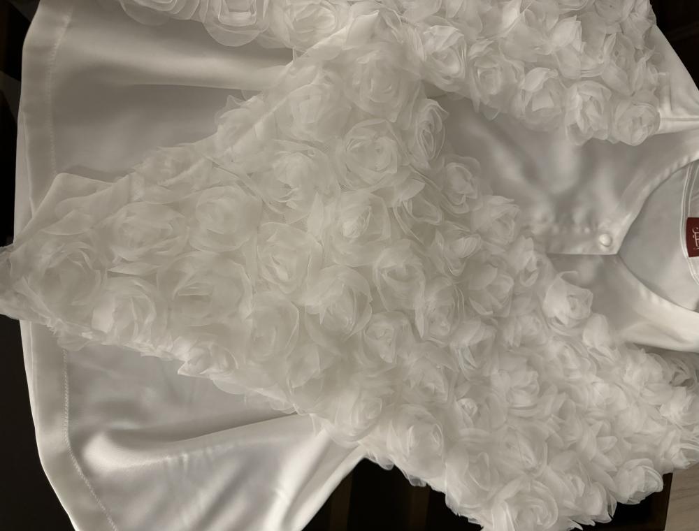 قماش كريب تفته مع شيفون الورد الجوري الابيض